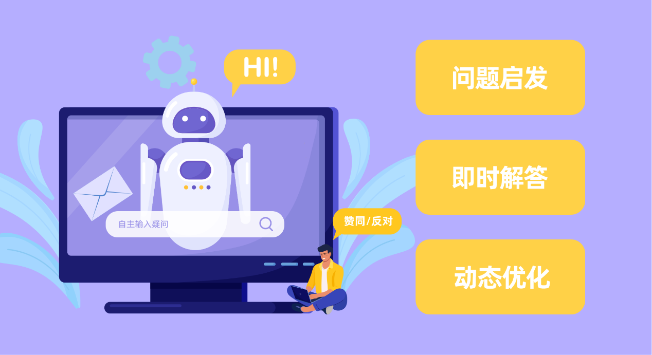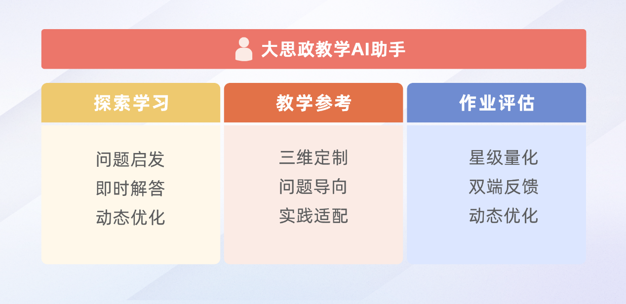 AI 助手化身 “智能思辨伙伴”,通過 “問題啟發(fā) — 即時解答 — 動態(tài)優(yōu)化” 三大功能構建沉浸式互動學習生態(tài),助力學生從知識 “被動接受者” 轉(zhuǎn)變?yōu)?“主動建構者”,在智能引導中深化思政理論認知、培養(yǎng)獨立思考能力。