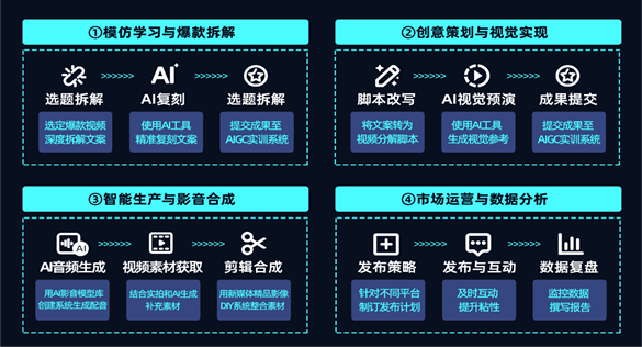 1.貫通“策劃-生成-剪輯-推廣-運營”全流程實戰(zhàn)能力;